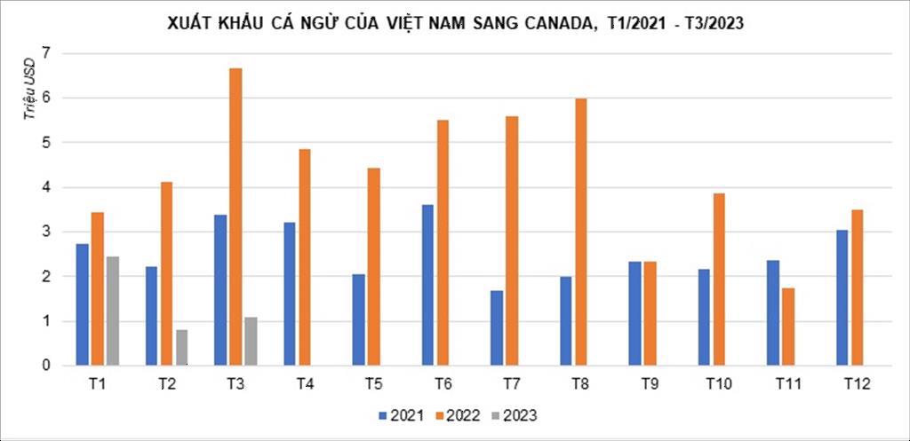 Sau khi tăng trưởng liên tục trong năm 2022, xuất khẩu cá ngừ của Việt Nam sang Canada đã sụt giảm liên tục trong 3 tháng đầu năm 2023.