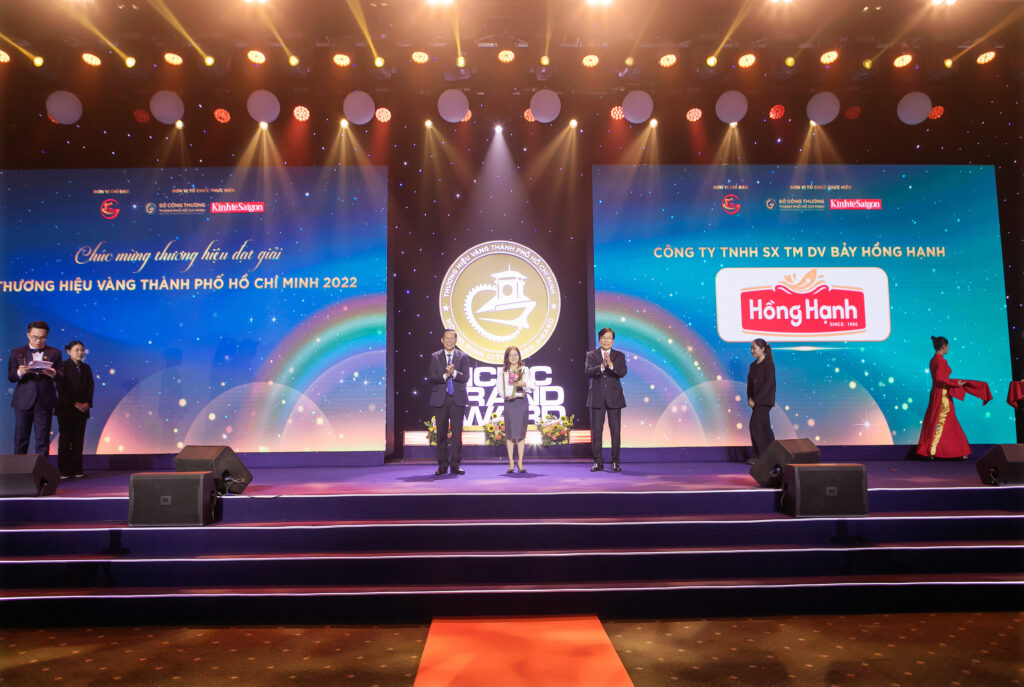 Tối ngày 6/1/2023, nước mắm Hồng Hạnh cùng 44 doanh nghiệp có kết quả xuất sắc trong công tác xây dựng và phát triển thương hiệu sản phẩm, dịch vụ lớn mạnh và ấn tượng, gắn liền với thương hiệu TPHCM đã được vinh danh tại lễ trao giải thưởng “Thương hiệu Vàng TPHCM lần 3 năm 2022″