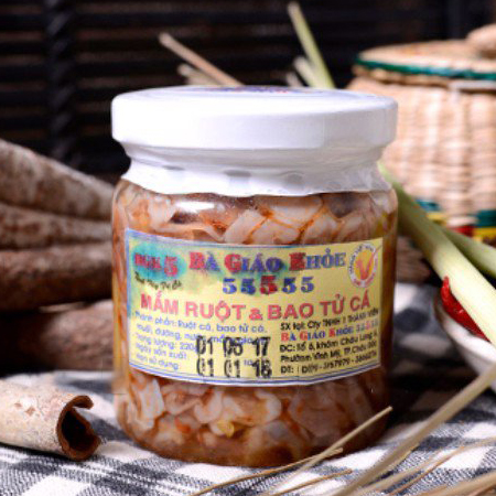 Ngoài mắm cá và mắm thái, An Giang còn nổi tiếng với món mắm ruột được làm từ ruột cá rất ngon, trộn với thính gạo lứt tạo nên hương vị riêng biệt chỉ có ở vùng đất nơi đây. Hương vị của món mắm này đậm đà hơn hẳn mắm ruốc, có thể làm nhiều món ăn, như làm mắm chấm xoài, rau, thịt… hay thậm chí ăn với cơm nóng, làm mắm ruột kho.